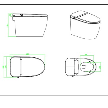 人性化设计:离座冲刷、手动冲刷、停电冲刷、足部冲水、座圈加热、静音缓降、光感夜灯、暖风烘干、UVC喷嘴杀菌、遥控器控制、显示功能、