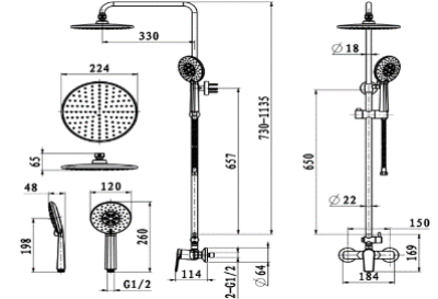 进水口到花洒端面高度:700-1105MM